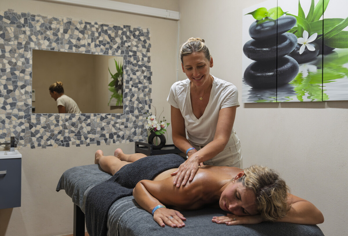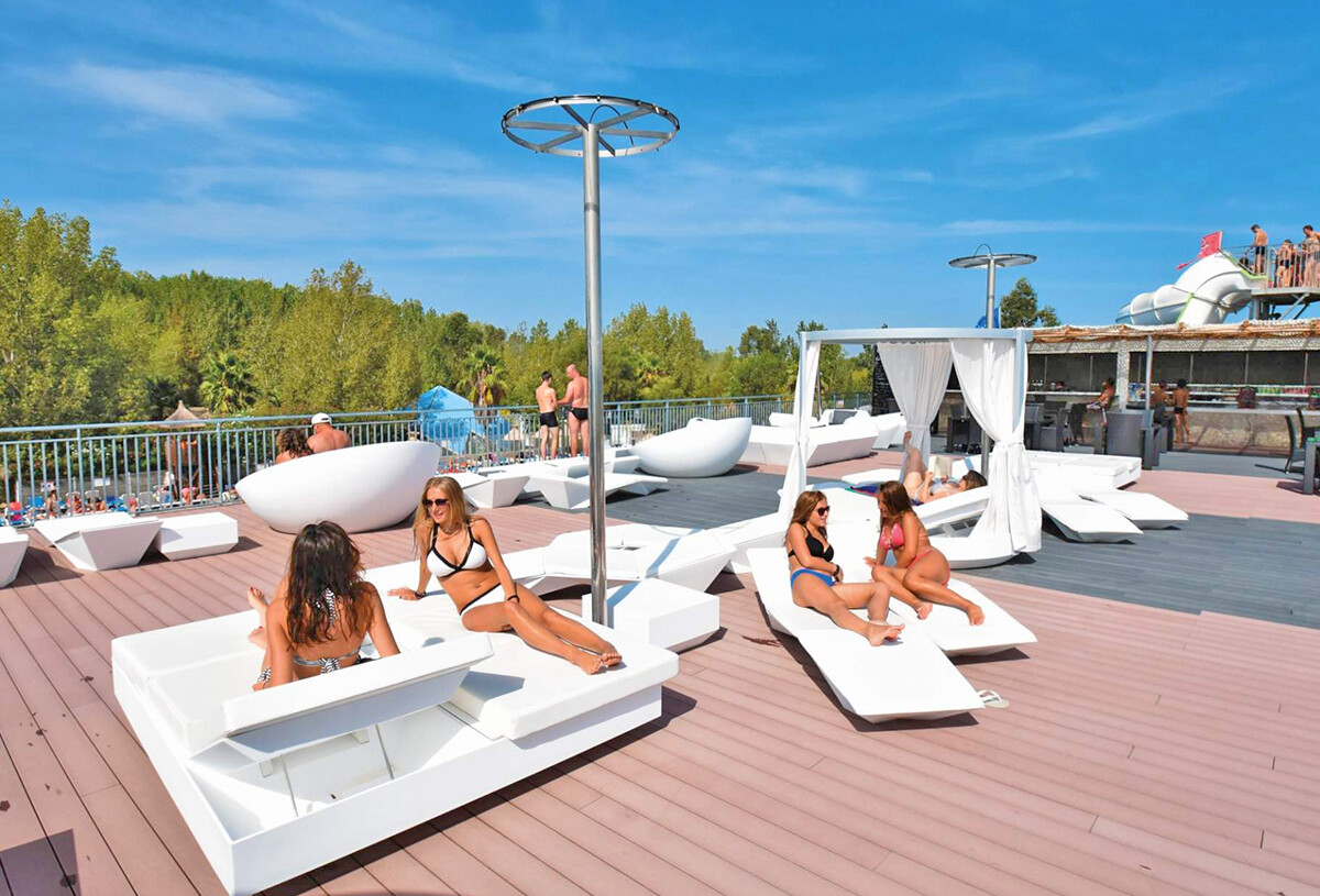 Enjoy a relaxing moment under the sun on a deckchair while keeping an eye on your children having fun in the aqua play area. Relax at the wellness area reserved for ages 18 and up.