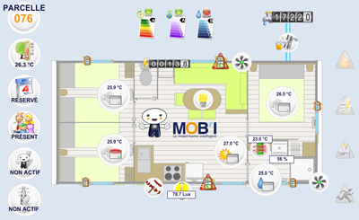 "MOB'I" is composed by an automat and sensors, which are installed in the heart of a 100% electric mobile-home, which communicate through a centralized management system. The campsite can manage directly your mobile-home from the reception desk. Sensors located inside the mobile-home will give lve information about the accommodation.